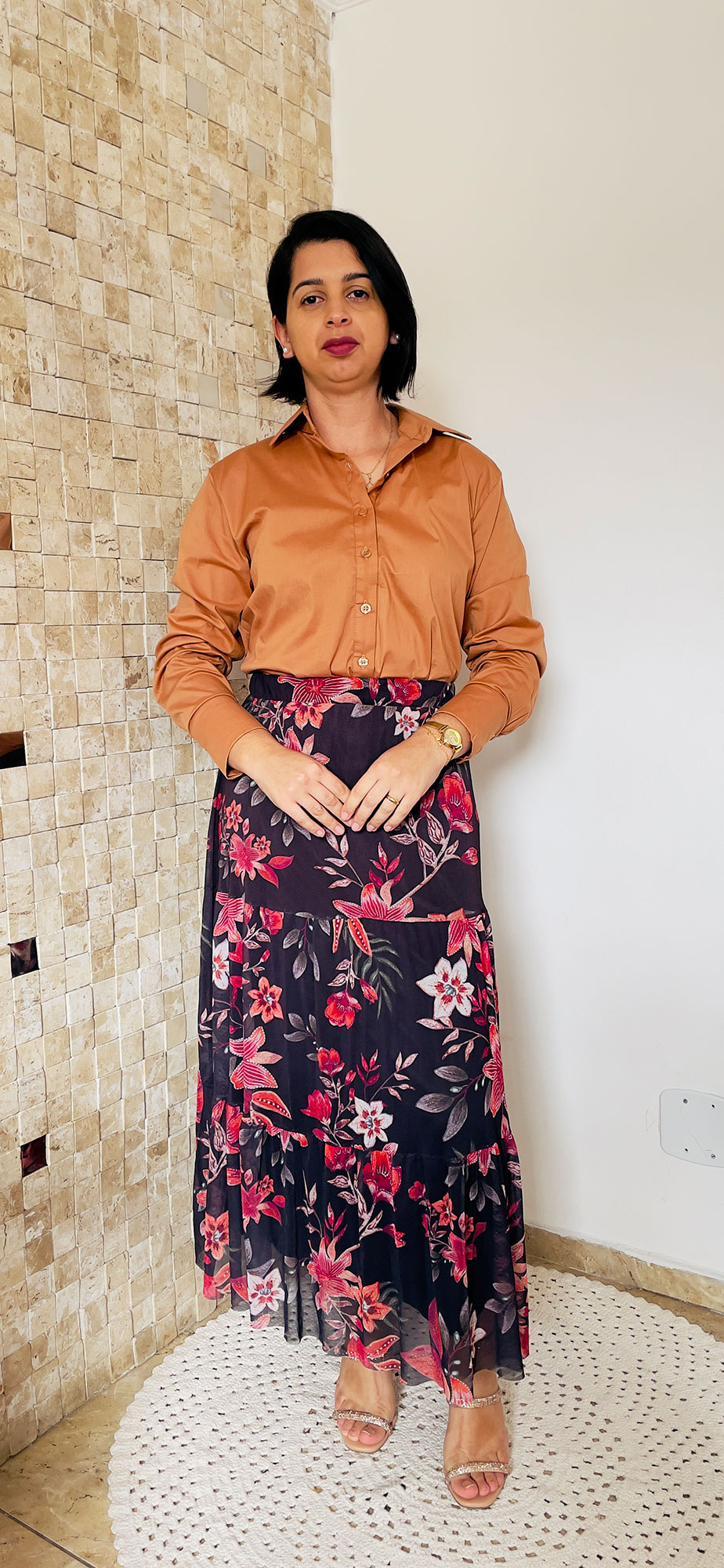 Dramática na medida certa e cheia de personalidade, essa saia midi em tule é a escolha perfeita para quem ama um look com presença e feminilidade. A leveza do tule confere movimento e fluidez, criando um visual marcante e ao mesmo tempo sofisticado.